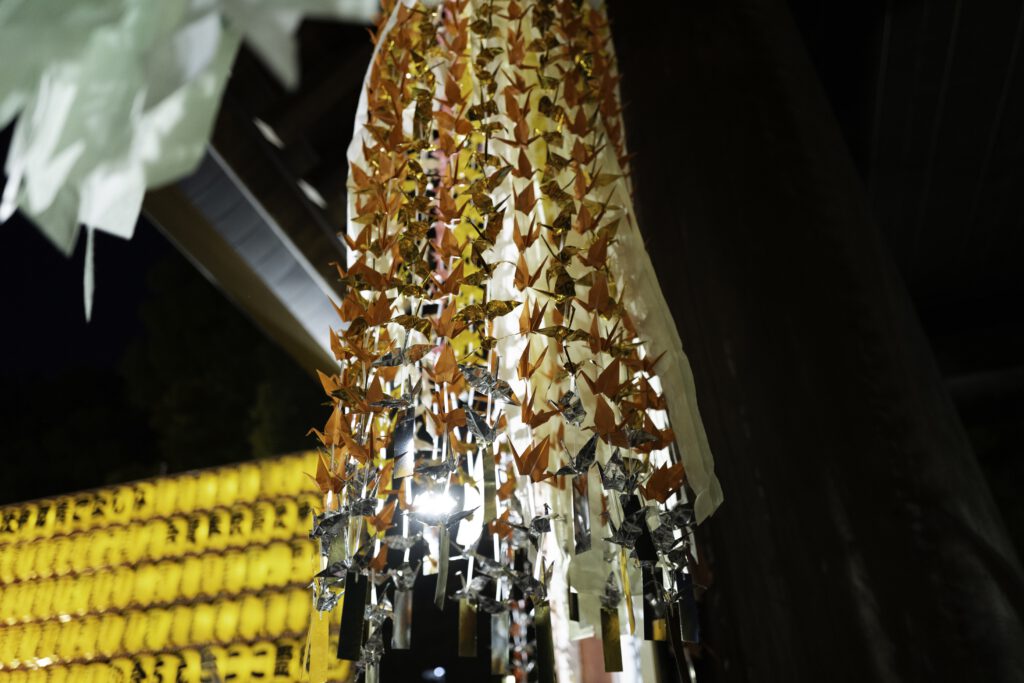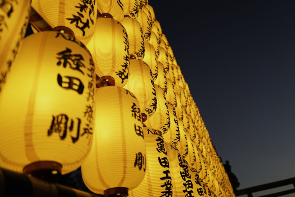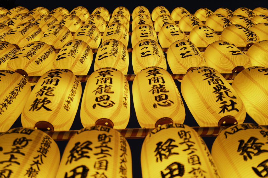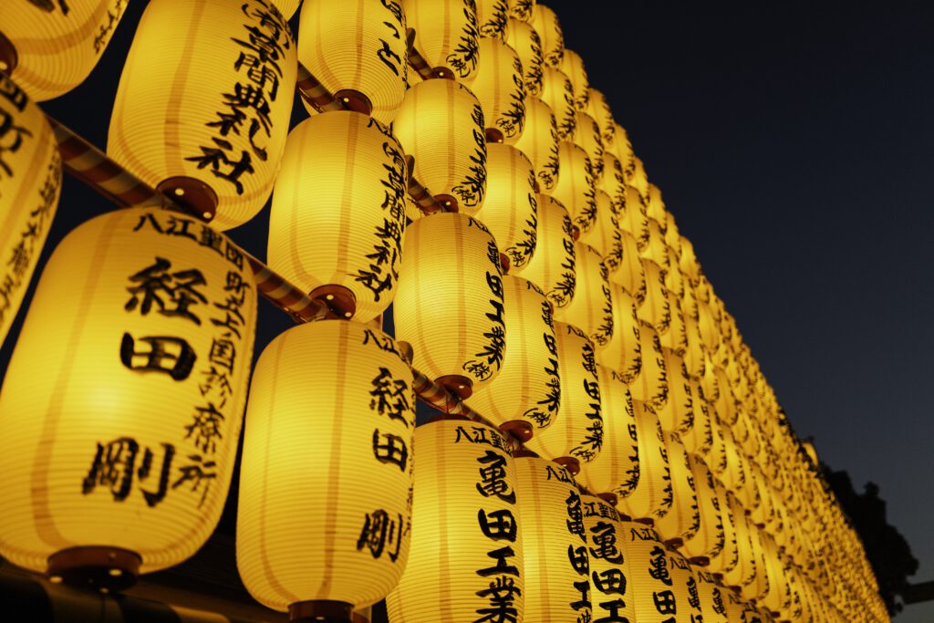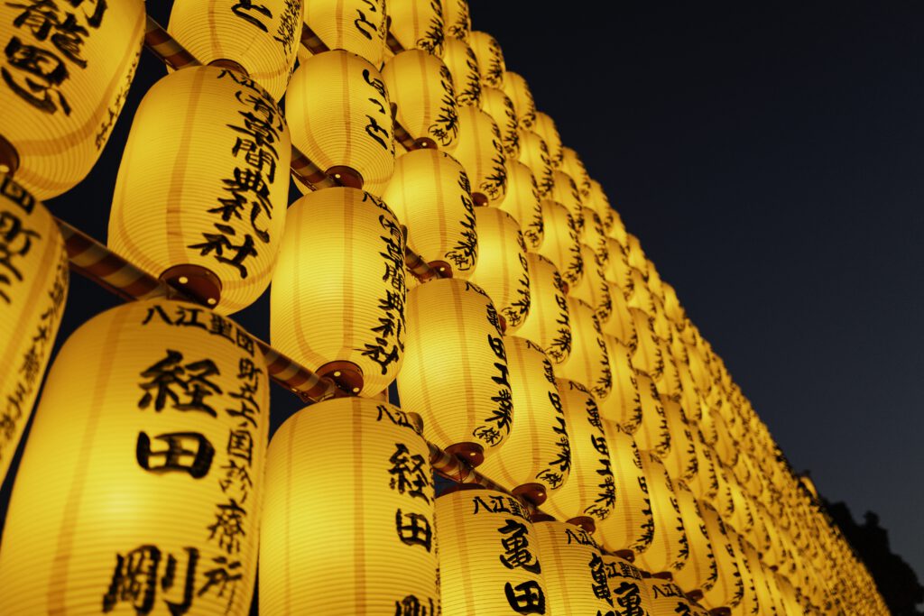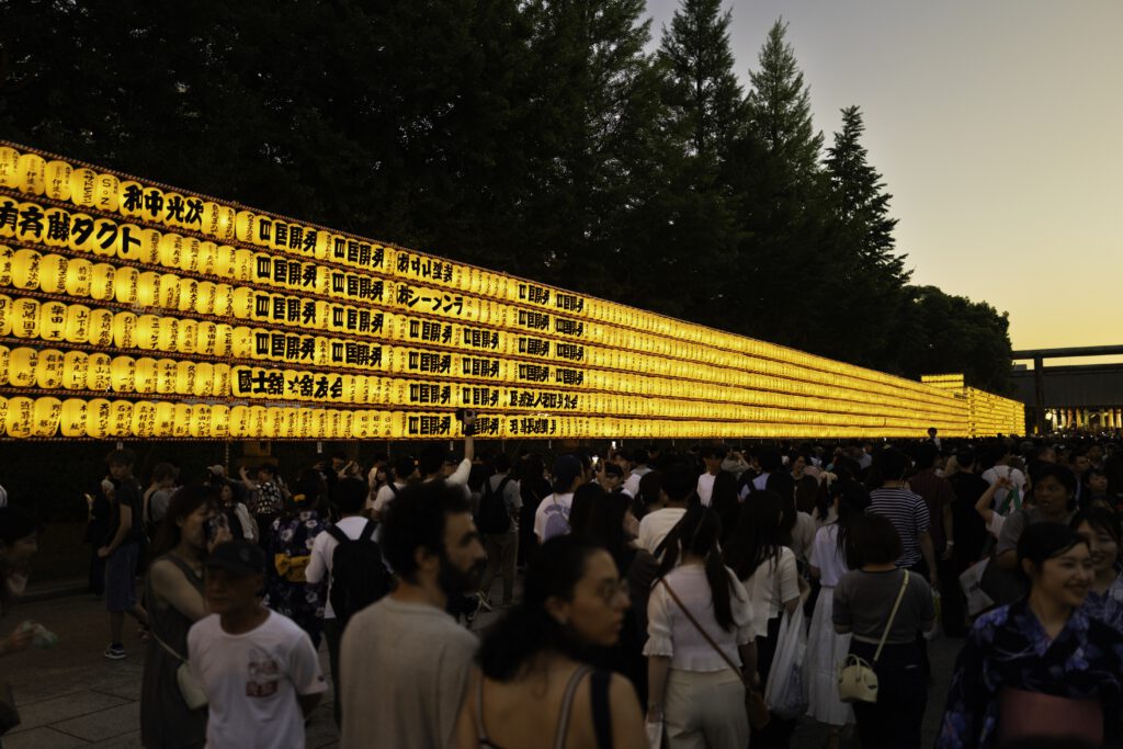 Die Nächte erwachen im sanften Schein von mehr als 30 000 Votiv- und Papierlaternen zum Leben, jede eine stille Ode an die in ihr verewigten Seelen. Die mit komplizierten Inschriften und Kunstwerken verzierten Laternen üben einen magischen Zauber aus und verwandeln das Gelände des Schreins in ein faszinierendes Spektakel aus Licht, Respekt und Erinnerung.
