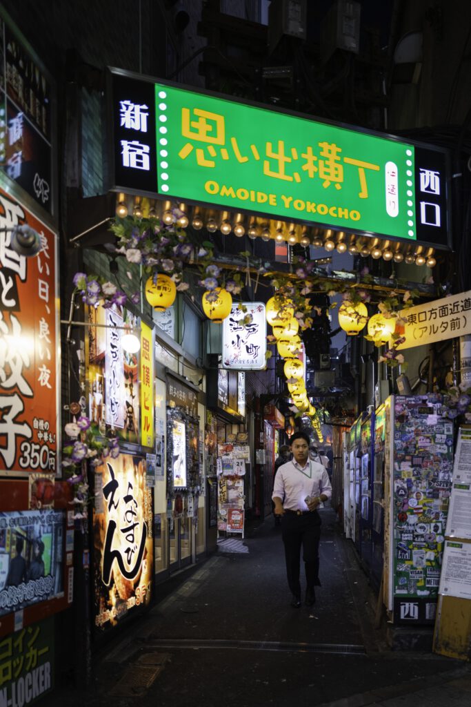 Omoide Yokocho, ou “Piss Alley”, est réputé pour son réseau de ruelles remplies de yakitori joints et de restaurants pittoresques.