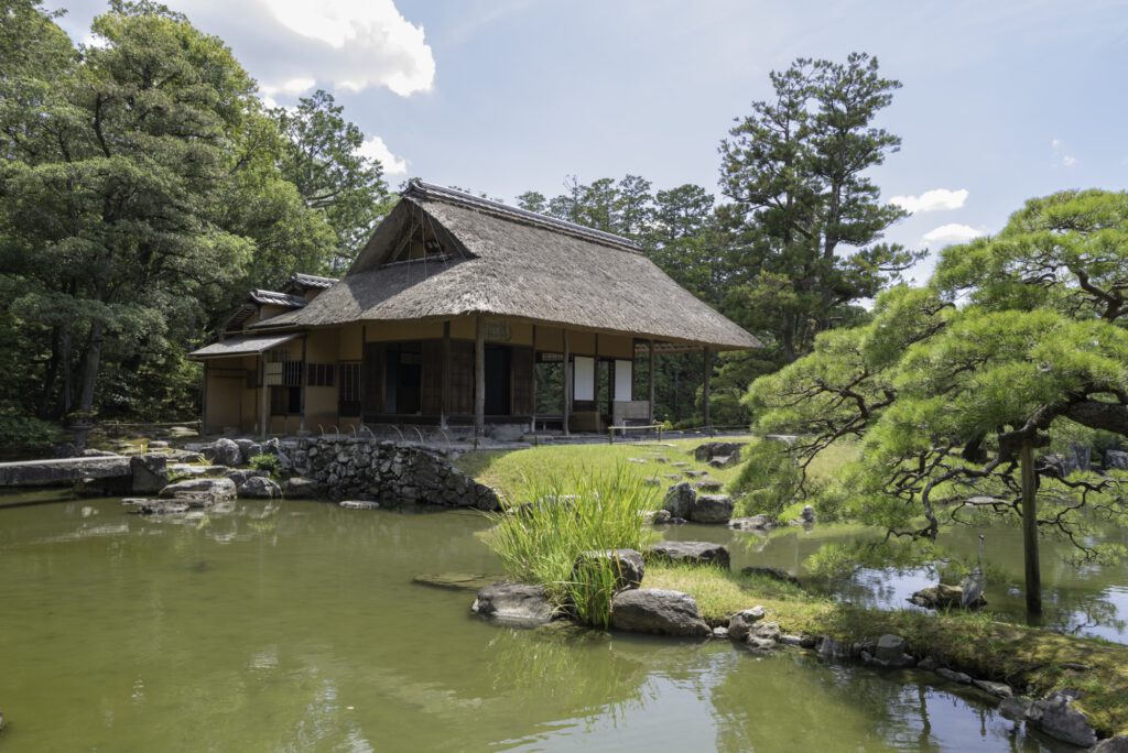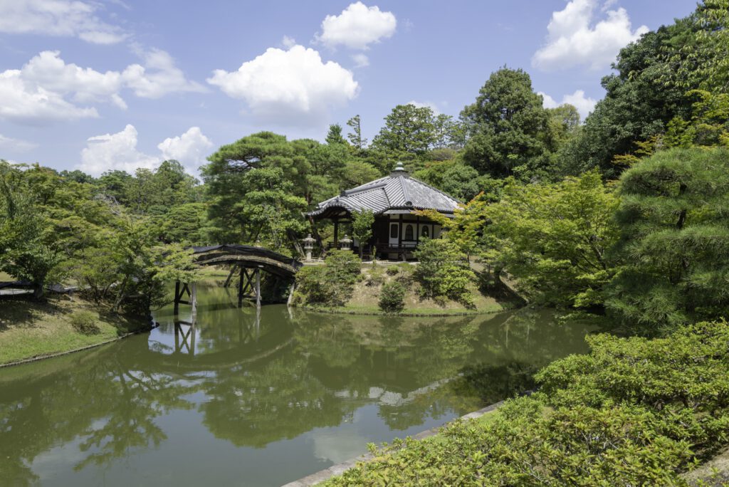 広大な庭園の中にひっそりと佇む茶室は、旅の途中で驚きをもたらし、それぞれの建造物がわびさびの美学を体現している。象徴的な池、優雅な橋、そして周囲の建築物は、移り変わる季節の脈動する色彩に縁取られ、視覚的かつ精神的な隠れ家を提供する。