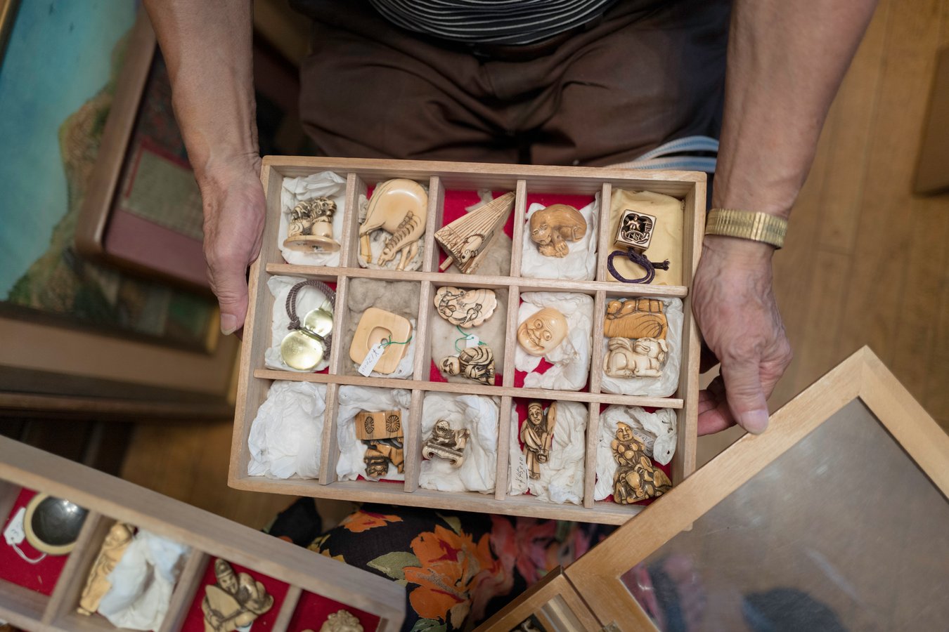 Netsuke are miniature Japanese sculptures that served as functional toggles for traditional garments, now celebrated for their artistry and history.